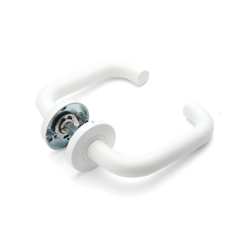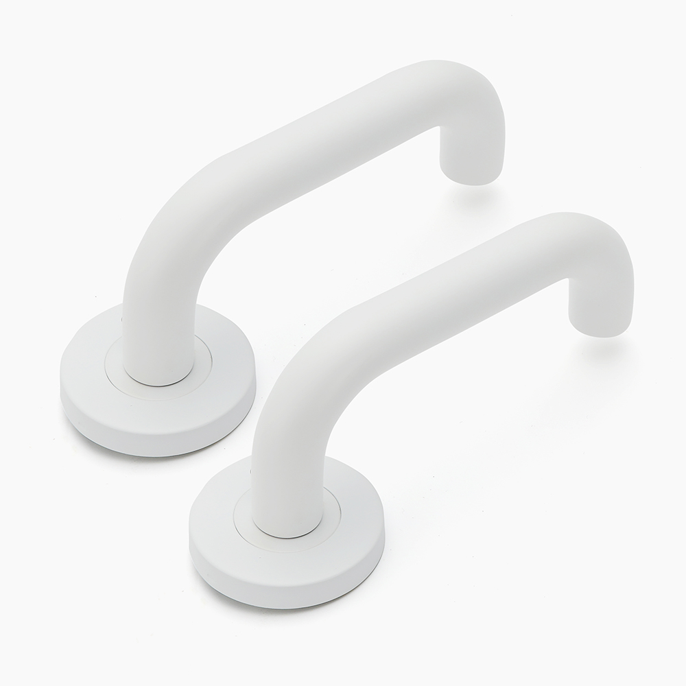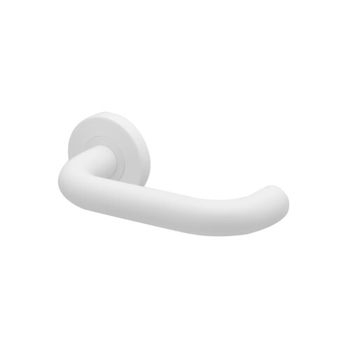 Deurkruk Valentina rond model u 20mm haaks op rozet mat wit PVD gecoat voor binnendeuren