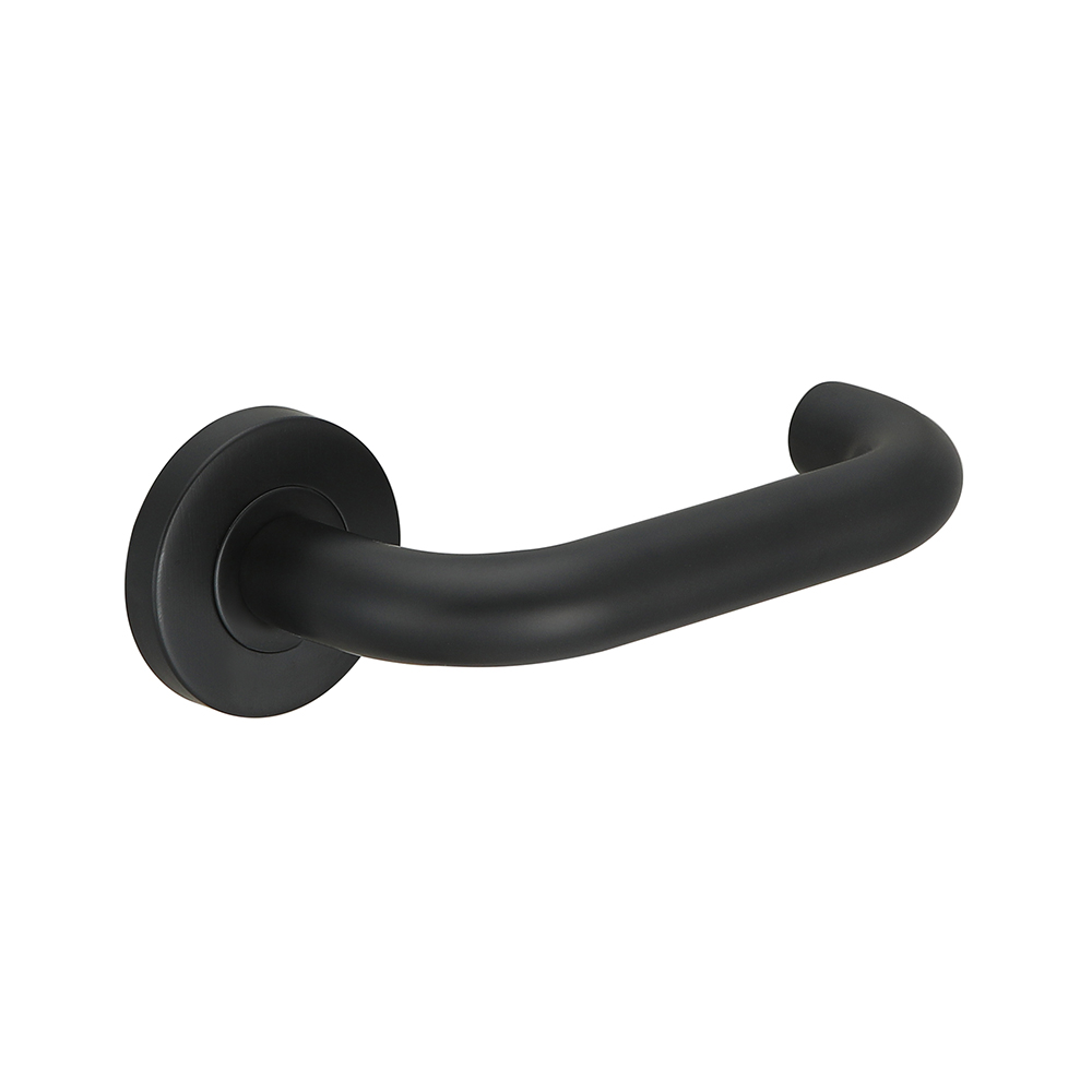 Deze elegante deurkruk uit de Valentina serie met ronde rozet biedt een stijlvol en eigentijds design in combinatie met hoogwaardige duurzaamheid. Ideaal voor binnendeuren in zowel woon als werkomgevingen. De gebogen hendel met een diameter van 20 mm ligt prettig in de hand en is haaks gemonteerd op een geveerde ronde rozet met een diameter van 55 mm en een dikte van slechts 9 mm. Dit zorgt voor een minimalistische en verfijnde uitstraling die moeiteloos past binnen diverse interieurstijlen.