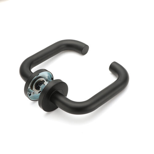 Deurkruk Valentina rond model u 20mm haaks op rozet mat zwart PVD gecoat voor binnendeuren