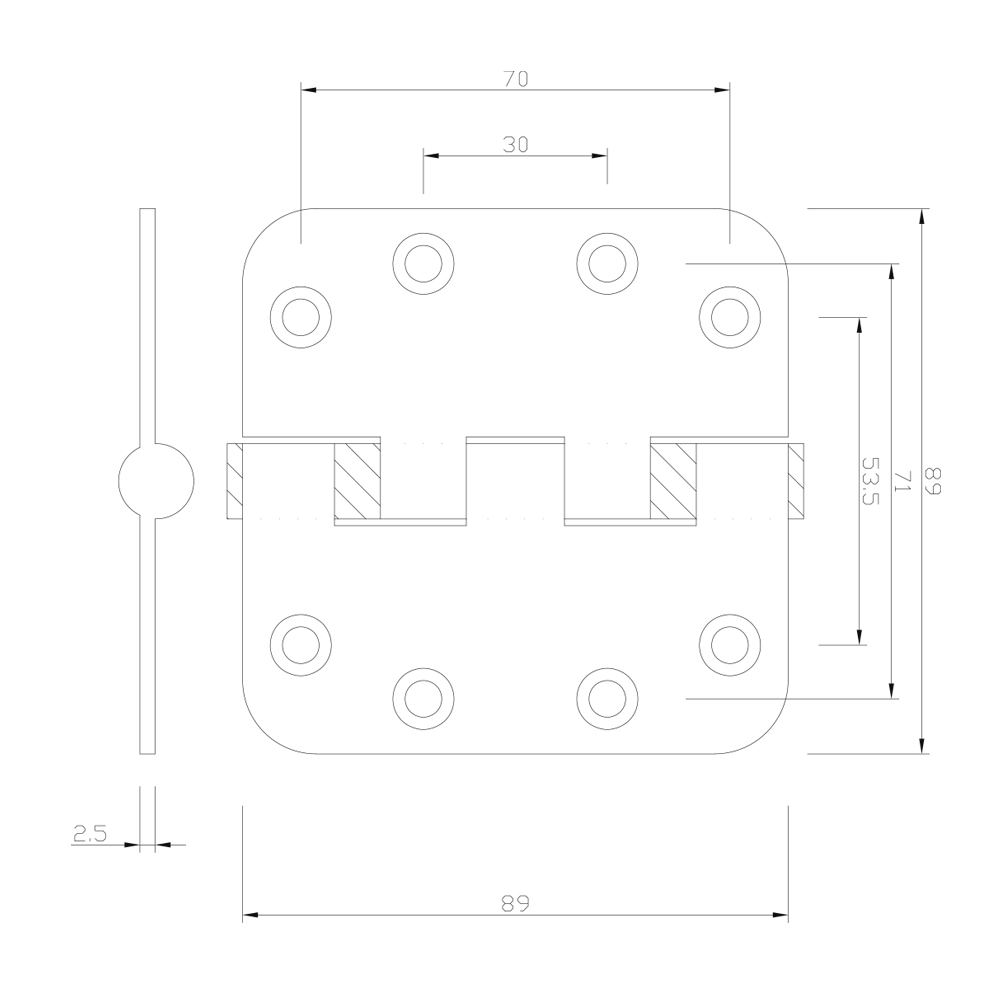 Kogelscharnier afgerond 89x89x2,5mm mat zwart PVD gecoat