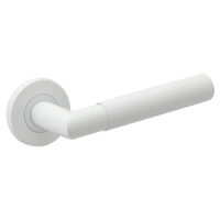Deurkruk Celia rond 20mm haaks op ultra dunne rozetten van 3mm mat wit PVD gecoat