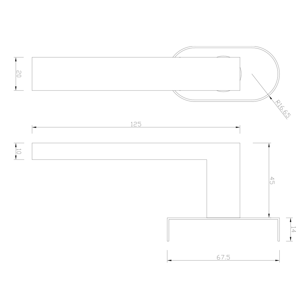 Dankzij de vierkante rozet geeft deze deurkreuk een strakke uitstraling. De rechthoekige hendel is 125 mm lang, 10 mm dik en steekt 60 mm uit vanaf het raamoppervlak.