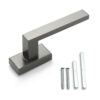 Dankzij de vierkante rozet geeft deze deurkreuk een strakke uitstraling. De rechthoekige hendel is 125 mm lang, 10 mm dik en steekt 60 mm uit vanaf het raamoppervlak.