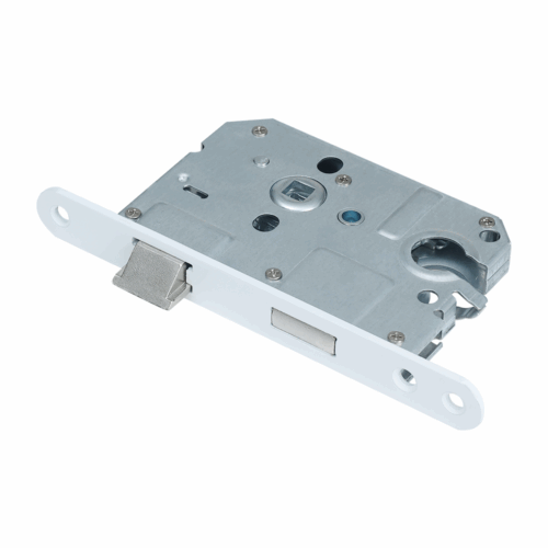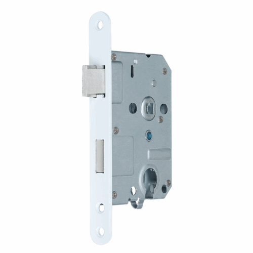 Met een robuuste constructie een doornmaat van 50 mm en een strak vormgegeven mat witte voorplaat van 174 x 20 mm, past dit slot uitstekend binnen uiteenlopende interieurstijlen. De profielcilinderuitsparing heeft een standaardmaat van 55 mm wat zorgt voor brede compatibiliteit met gangbare cilinders. Door de symmetrische opbouw is het slot geschikt voor zowel links- als rechtsdraaiende deuren.