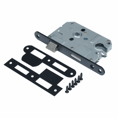 Met een robuuste constructie een doornmaat van 50 mm en een strak vormgegeven mat zwarte voorplaat van 174 x 20 mm, past dit slot uitstekend binnen uiteenlopende interieurstijlen. De profielcilinderuitsparing heeft een standaardmaat van 55 mm wat zorgt voor brede compatibiliteit met gangbare cilinders. Door de symmetrische opbouw is het slot geschikt voor zowel links- als rechtsdraaiende deuren.