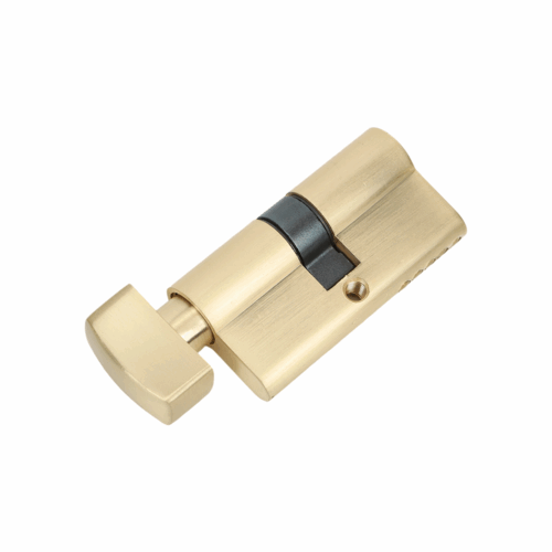 Deze profielcilinder is uitgevoerd met een knop aan de binnenzijde, waardoor je de deur eenvoudig zonder sleutel kunt openen en sluiten. Ideaal voor extra gebruiksgemak en snelle bediening, bijvoorbeeld bij voordeuren of binnendeuren die vaak worden gebruikt.