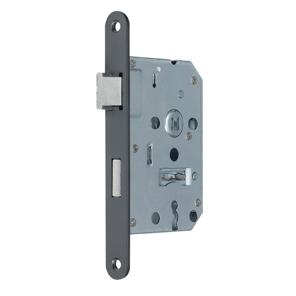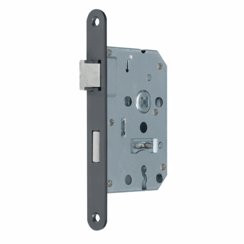 De robuuste constructie met een doornmaat van 50 mm en een strak vormgegeven geborstelde gun metal voorplaat 174 x 20 mm geeft het slot een moderne uitstraling die past bij uiteenlopende interieurstijlen. Het sleutelgat heeft een standaardmaat van 56 mm, wat zorgt voor een goede compatibiliteit met gangbare deurkrukken en rozetten. Dankzij de symmetrische bouw is het slot toepasbaar in zowel links- als rechtsdraaiende deuren. Het wordt standaard geleverd met twee bijpassende klaviersleutels, zodat directe installatie en gebruik mogelijk is zonder extra toebehoren.