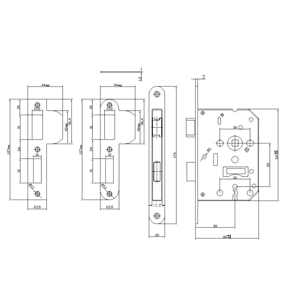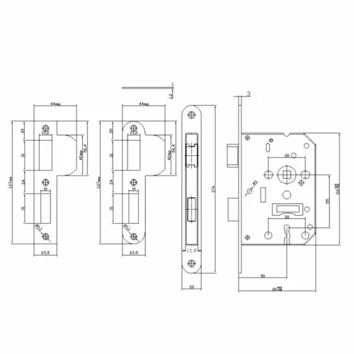 De robuuste constructie met een doornmaat van 50 mm en een strak vormgegeven geborstelde messing voorplaat 174 x 20 mm geeft het slot een moderne uitstraling die past bij uiteenlopende interieurstijlen. Het sleutelgat heeft een standaardmaat van 56 mm, wat zorgt voor een goede compatibiliteit met gangbare deurkrukken en rozetten. Dankzij de symmetrische bouw is het slot toepasbaar in zowel links- als rechtsdraaiende deuren. Het wordt standaard geleverd met twee bijpassende klaviersleutels, zodat directe installatie en gebruik mogelijk is zonder extra toebehoren.