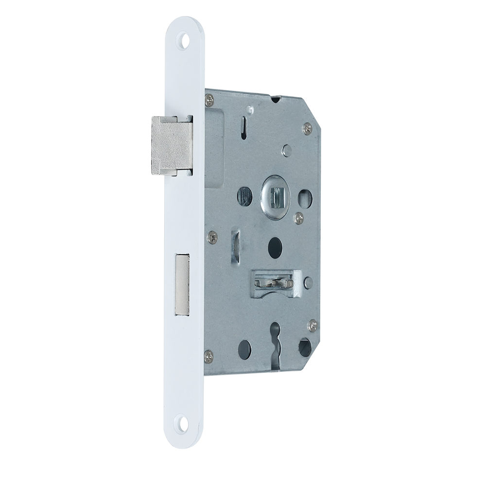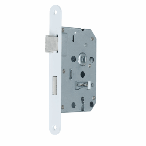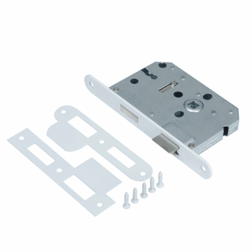 De robuuste constructie met een doornmaat van 50 mm en een strak vormgegeven mat witte voorplaat 174 x 20 mm geeft het slot een moderne uitstraling die past bij uiteenlopende interieurstijlen. Het sleutelgat heeft een standaardmaat van 56 mm, wat zorgt voor een goede compatibiliteit met gangbare deurkrukken en rozetten. Dankzij de symmetrische bouw is het slot toepasbaar in zowel links- als rechtsdraaiende deuren. Het wordt standaard geleverd met twee bijpassende klaviersleutels, zodat directe installatie en gebruik mogelijk is zonder extra toebehoren.