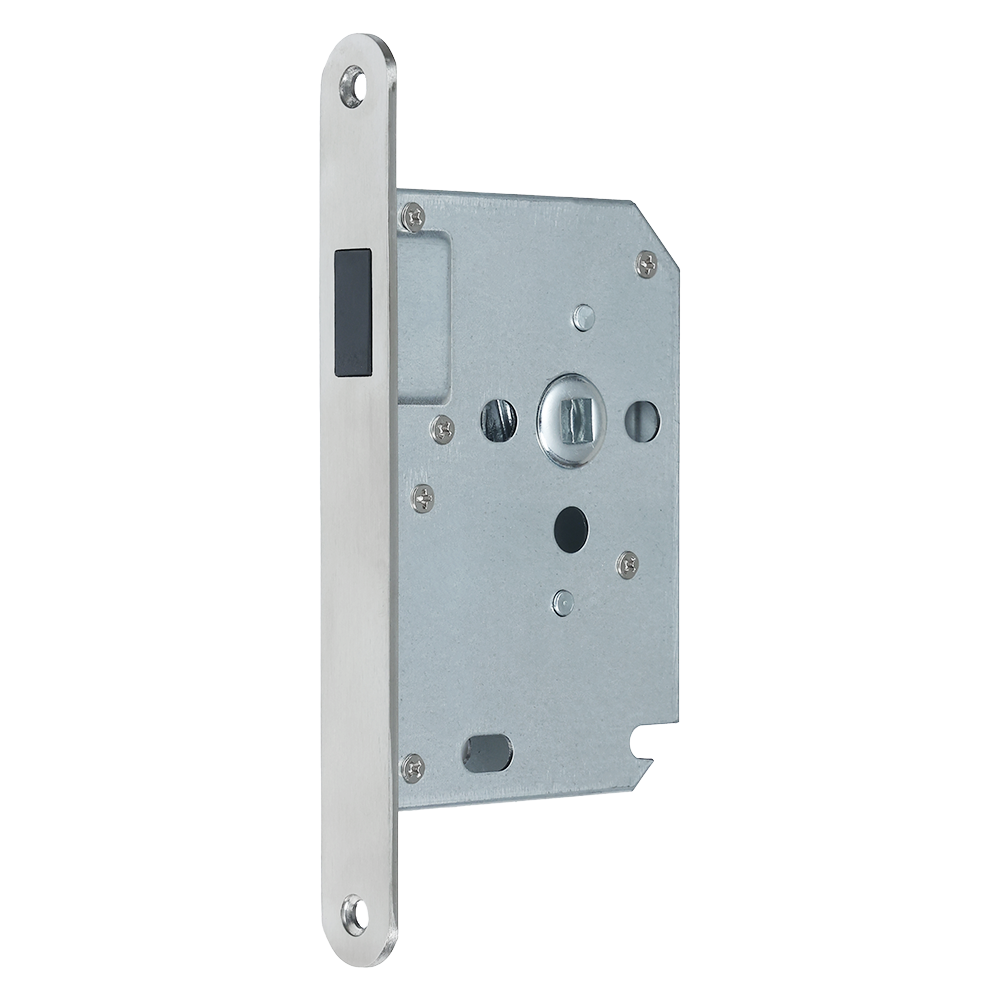 Dit slot is voorzien van een magnetisch dagschootmechanisme, wat betekent dat de dagschoot automatisch in de sluitkom wordt getrokken zodra de deur gesloten is — volledig geluidloos en zonder uitstekende delen. Bij het openen van de deur verdwijnt de dagschoot in het slot, waardoor deze vlak ligt met de voorplaat. Dit zorgt voor een strakke afwerking en voorkomt beschadigingen aan het kozijn.